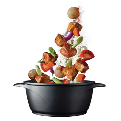 בריאותיים ובטוחות לשימוש במגע עם מזון, ועמיד לאורך זמן • ידיות יצוקות לגוף סיר ועמידות
